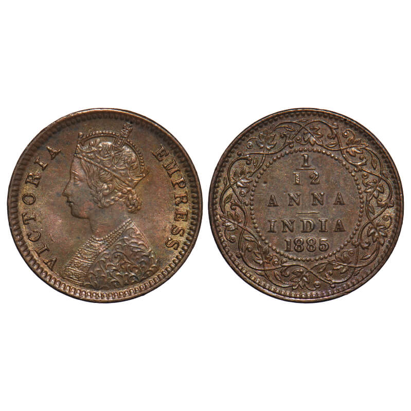 Victoria Empress, Copper, 1/12 Anna, 1885, Calcutta Mint, Obv B, No mint mark. F. Prid 790. GK 900. Extremely Fine+. Very Scarce.