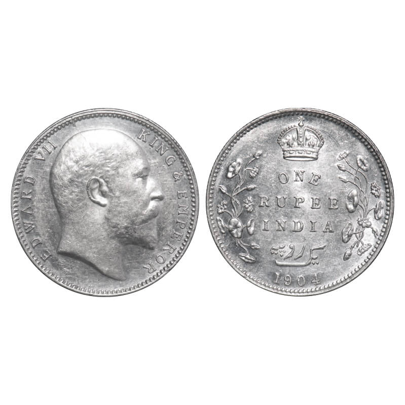 Edward VII, Silver, Rupee, 1904, Bombay Mint, 'B' incused and dot, 5 diamonds and bottom stroke of numeral 4 short. F. Prid 200. GK 932. Uncirculated. Scarce.