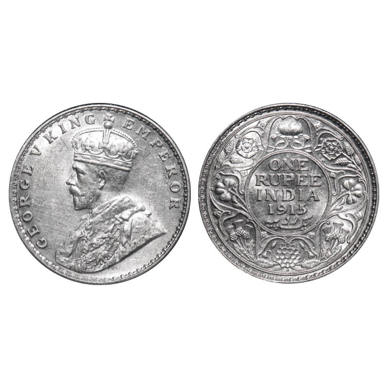 George V, Silver, Rupee, 1915, Calcutta Mint, No dot. F. Prid 211. GK 1031. Uncirculated with luste...