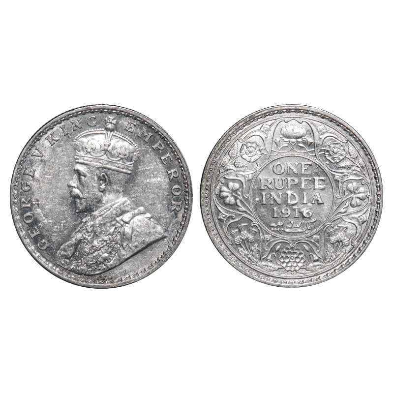 George V, Silver, Rupee, 1916, Bombay Mint, Dot, 'A' of India and numeral 6 of 1916 seen on Obv, Ghost on Rev. F. Prid 222. GK 1034. Mint State. Rare.