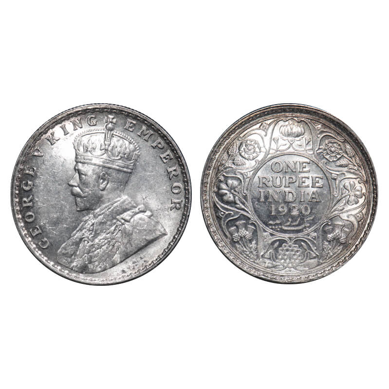 George V, Silver, Rupee, 1920, Bombay Mint, Dot. F. Prid 226. GK 1042. Mint State. Rare.