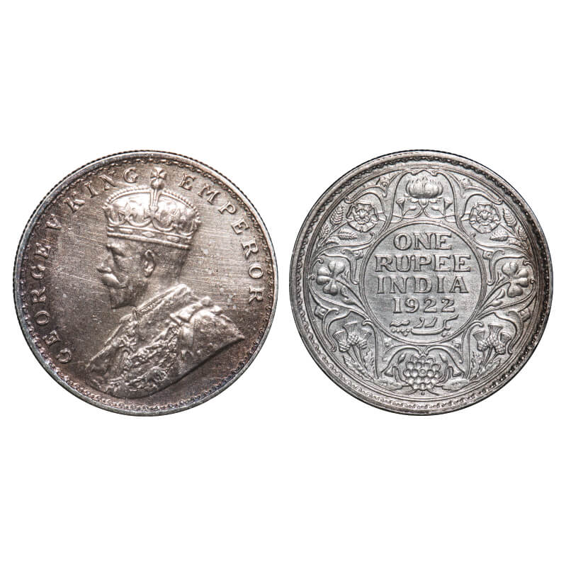 George V, Silver, Rupee, 1922, Bombay Mint, Dot. F. Prid 228. GK 1044. Almost Uncirculated. Very Scarce.