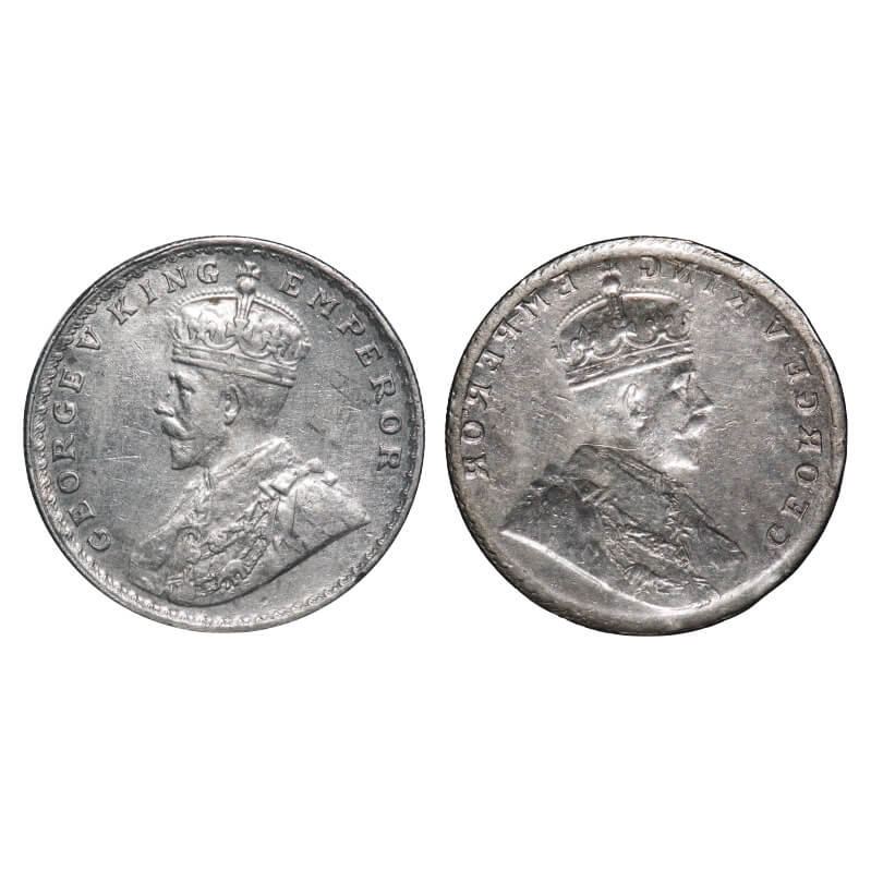 George V, Silver, Half Rupee, 1911, Calcutta Mint, No dot, Pig-Type, Edge nick on Obv rim edge. F. ...