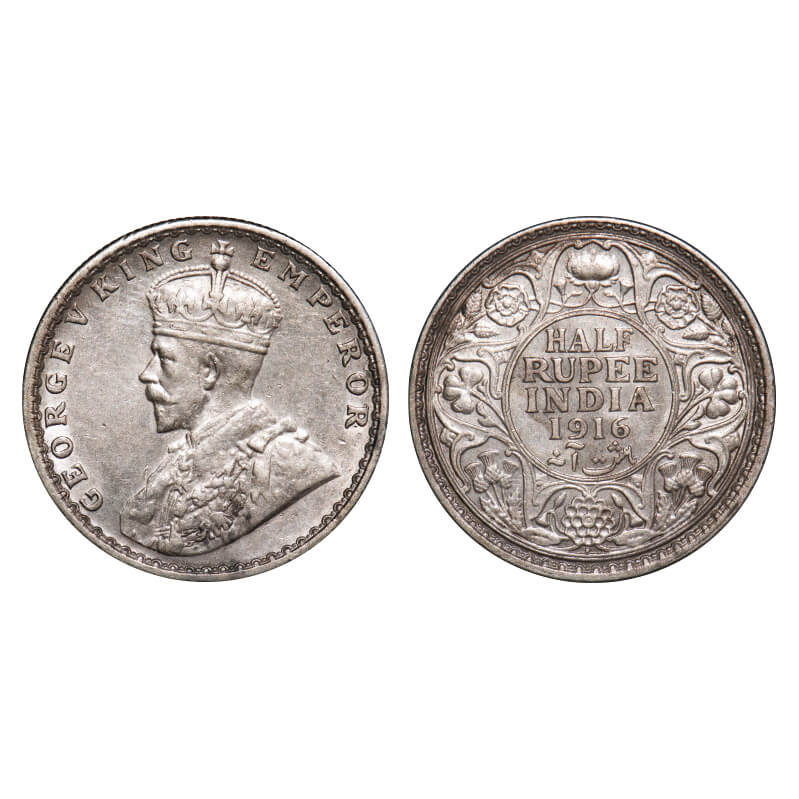 George V, Silver, Half Rupee, 1916, Bombay Mint, Dot. F. Prid 340. GK 1054. Extremely Fine. Scarce.