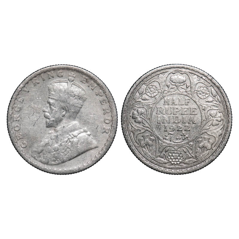 George V, Silver, Half Rupee 1922, Bombay Mint, Dot. F. Prid 344. GK 1060. Very Fine+. Scarce.