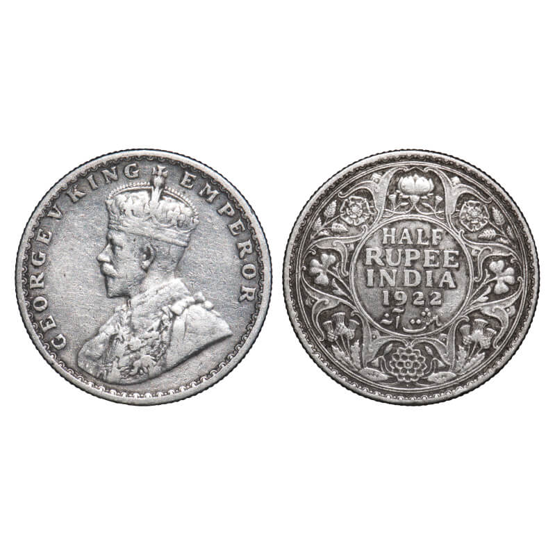 George V, Silver, Half Rupee, 1922, Bombay Mint, Dot. F. Prid 344. GK 1060. Very Fine. Scarce.
