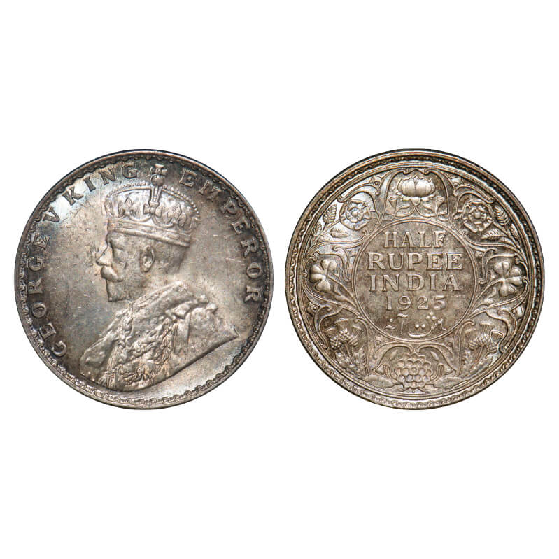 George V, Silver, Half Rupee, 1925, Bombay Mint, Dot. F. Prid 347. GK 1066. Extremely Fine+. Very S...