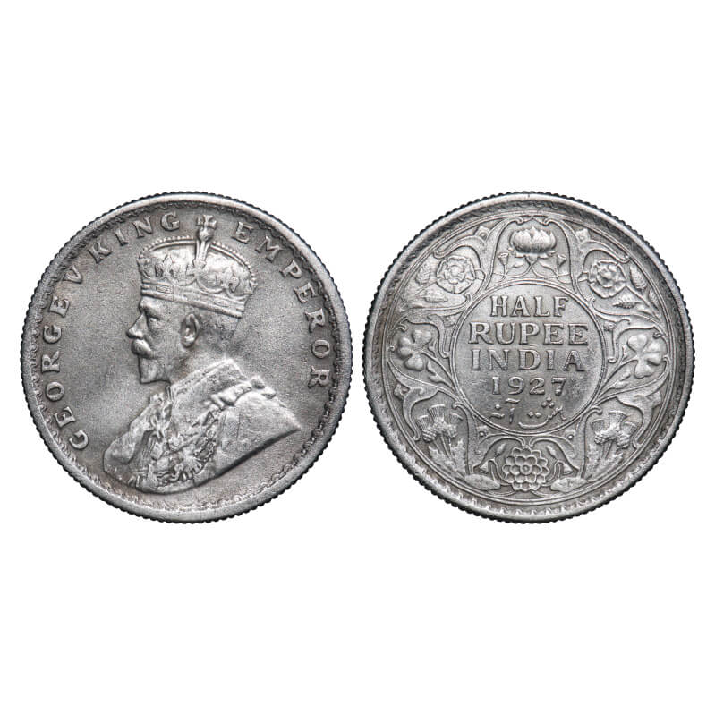 George V, Silver, Half Rupee, 1927, Calcutta Mint, No dot, Elephant. F. Prid 330. GK 1069. Extremely Fine. Scarce.