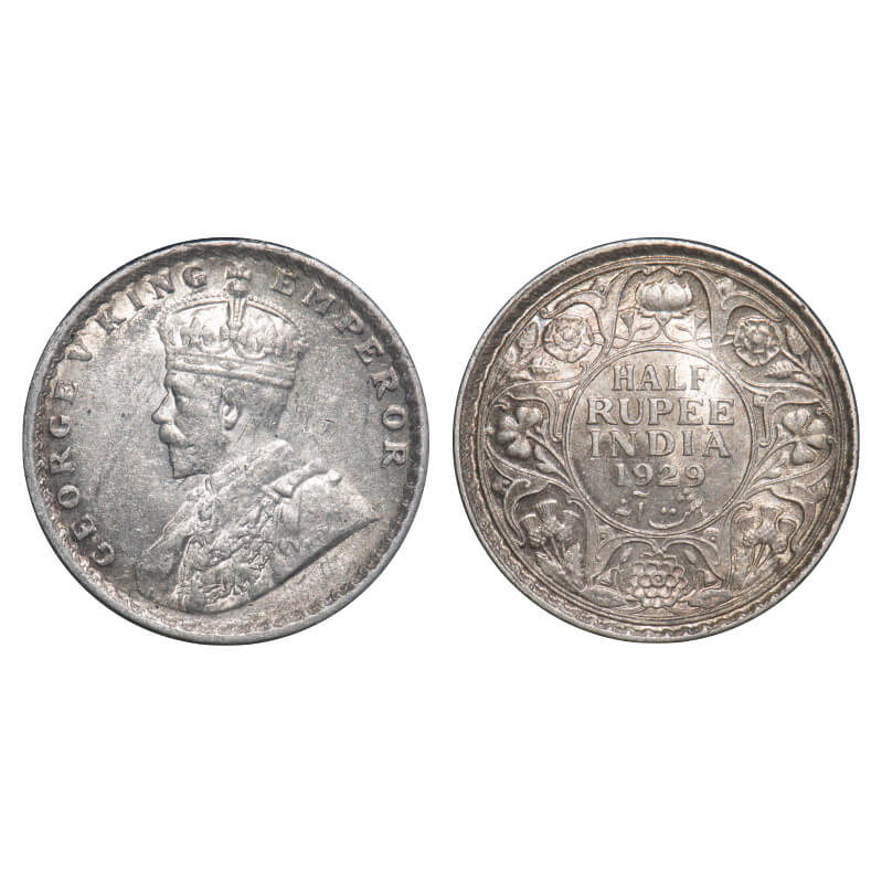 George V, Silver, Half Rupee, 1929, Calcutta Mint, No dot. F. Prid 331. GK 1071. Uncirculated, Toned. Very Scarce.