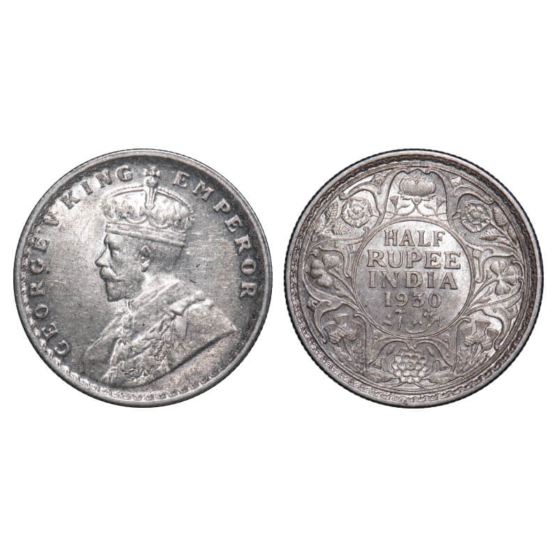 George V, Silver, Half Rupee, 1930, Calcutta Mint, No dot. F. Prid 332. GK 1072. Uncirculated, Toned. very scarce.