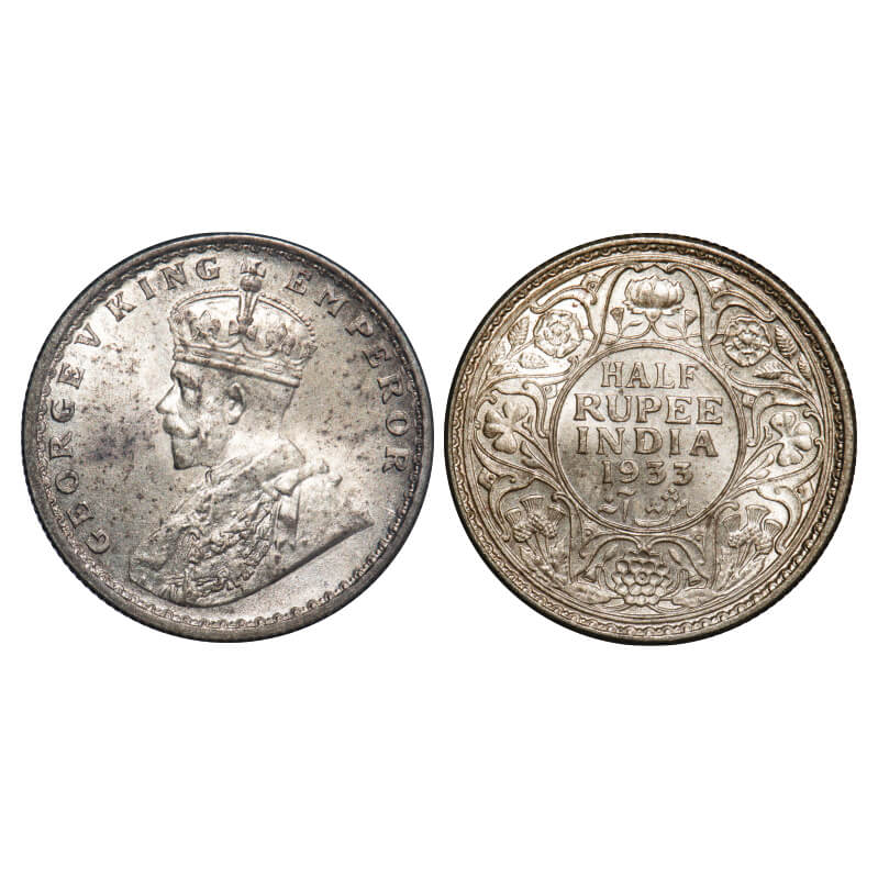 George V, Silver, Half Rupee, 1933, Calcutta Mint, No dot. F. Prid 333. GK 1073. About Uncirculated, Details. Scarce.