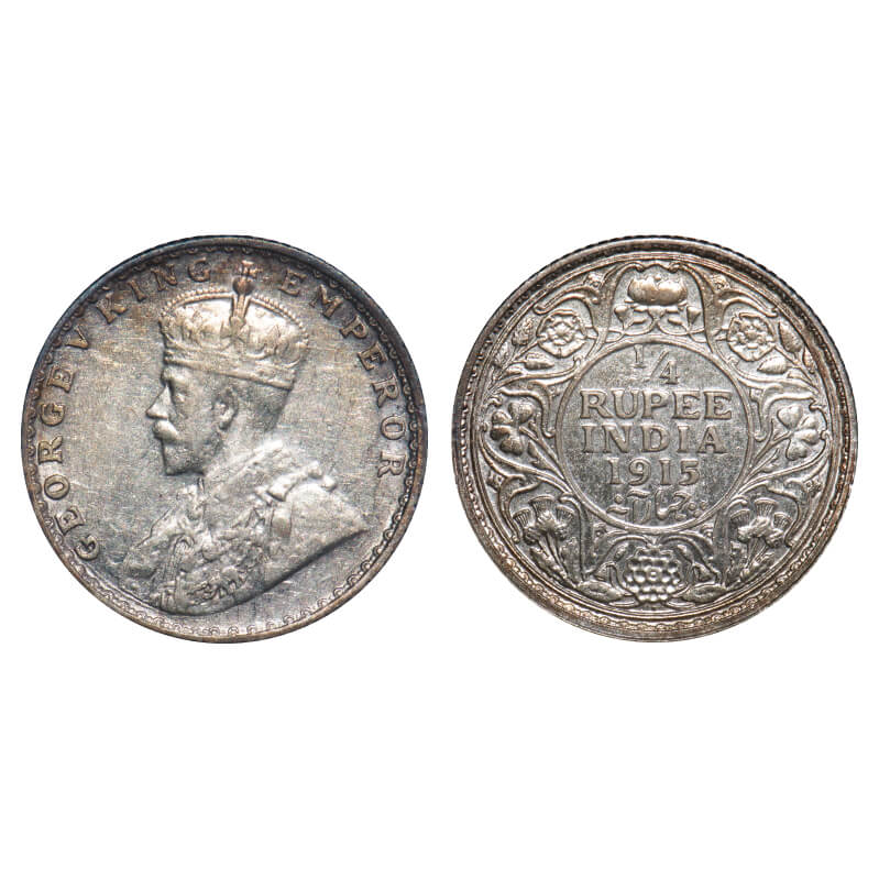 George V, Silver, 1/4 Rupee, 1915, Bombay Mint, Dot, Elephant. F. Prid 457. GK 1088. Extremely Fine. Very Scarce.