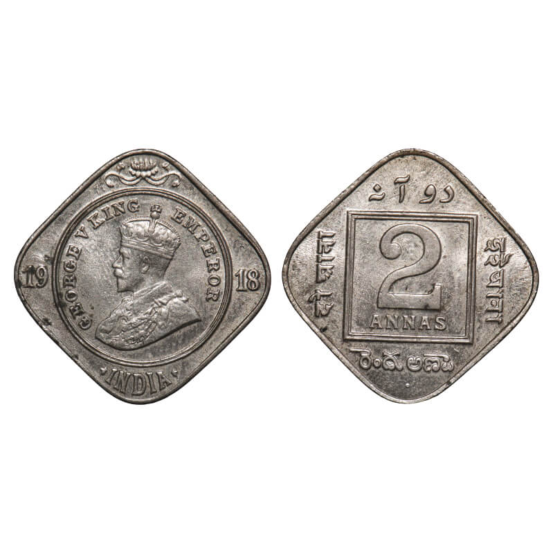 George V, Copper-Nickel, 2 Annas, 1918, Bombay Mint, Dot. F. Prid 894. GK 1119. About Uncirculated. Scarce.