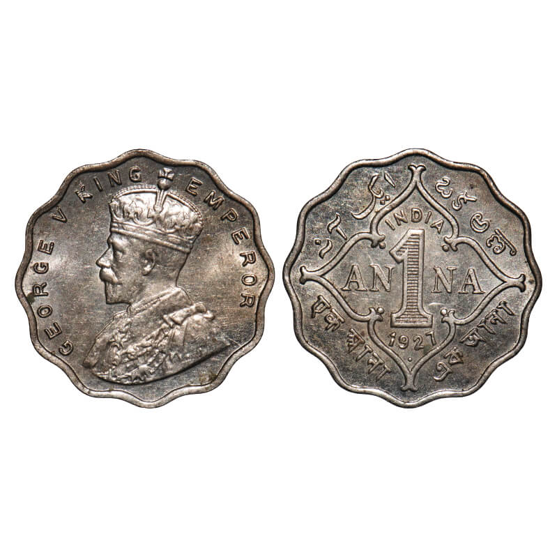 George V, Copper-Nickel, 1 Anna, 1927, Bombay Mint, Dot. F. Prid 955. GK 1158. Uncirculated. Rare.