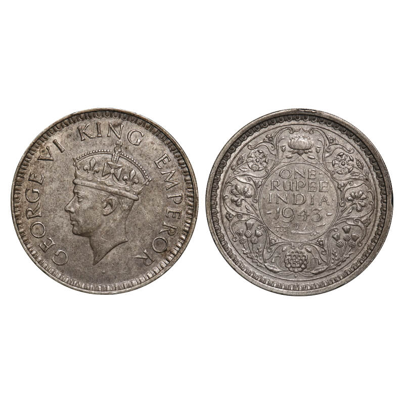 | George VI, Half Silver, Rupee, 1943, Bombay Mint, A(b)/III, Diamond, Security edge, Large Head, Large 3. F. Prid Unlisted. GK 1269. Very Fine+. Rare. |