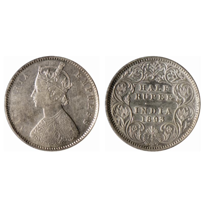 Victoria Empress, Silver ½ Rupee, 1893, Calcutta Mint, A/I, C incused. GK 649.