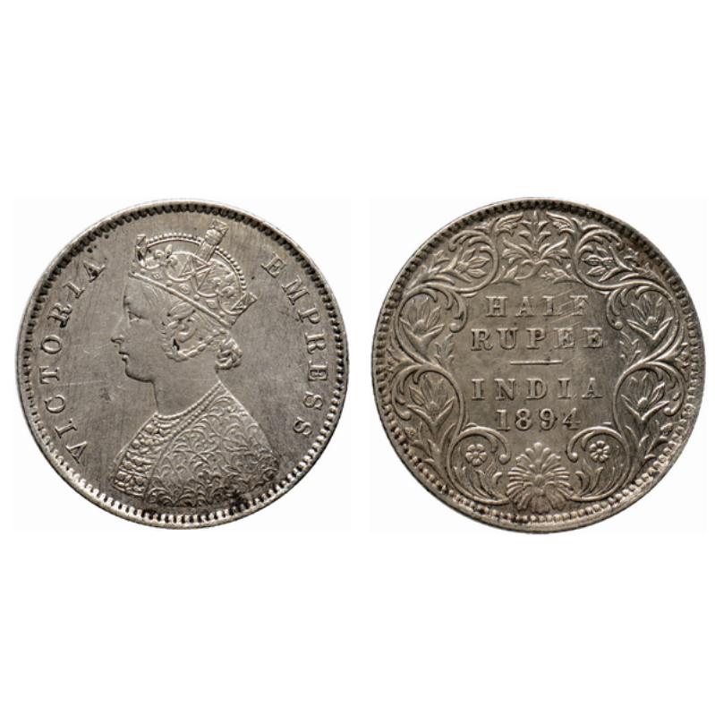 Victoria Empress, Silver ½ Rupee, 1894, Bombay Mint, A/I, B incused. GK 650.