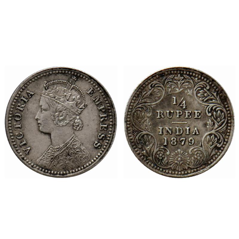 Victoria Empress, Silver ¼ Rupee, 1879, Calcutta Mint, C/II, 'C' incused. GK 674.