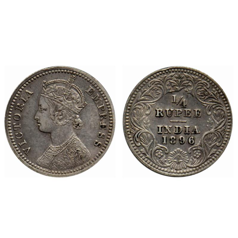 Victoria Empress, Silver ¼ Rupee, 1896, Calcutta Mint, C/II, C incused. GK 728.