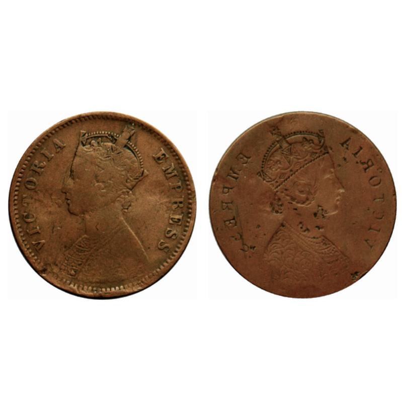 Victoria Empress, Copper Quarter Anna, Obverse Brokage/lakhi.