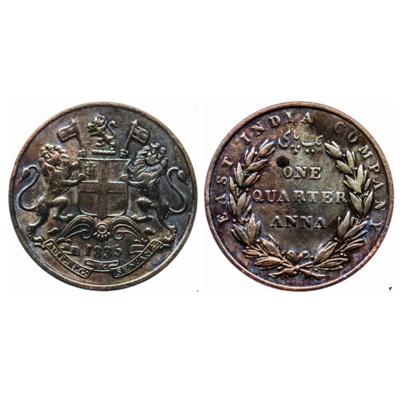 William IV, Copper, Quarter Anna, 1835, Madras Mint, B/VII, 27 Berries (13L + 14R) 'Y' in Company ...