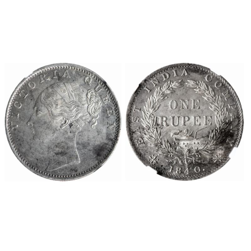 Victoria Queen, Silver, Rupee, 1840, Continuous Legend, Calcutta Mint, 35 Berries, S&W-2.