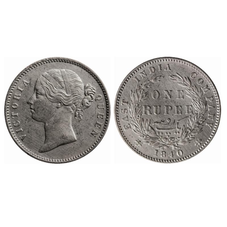 Victoria Queen, Silver, Rupee (2 Coins), 1840, 1) Bombay Mint, C/VI, English head with completely m...