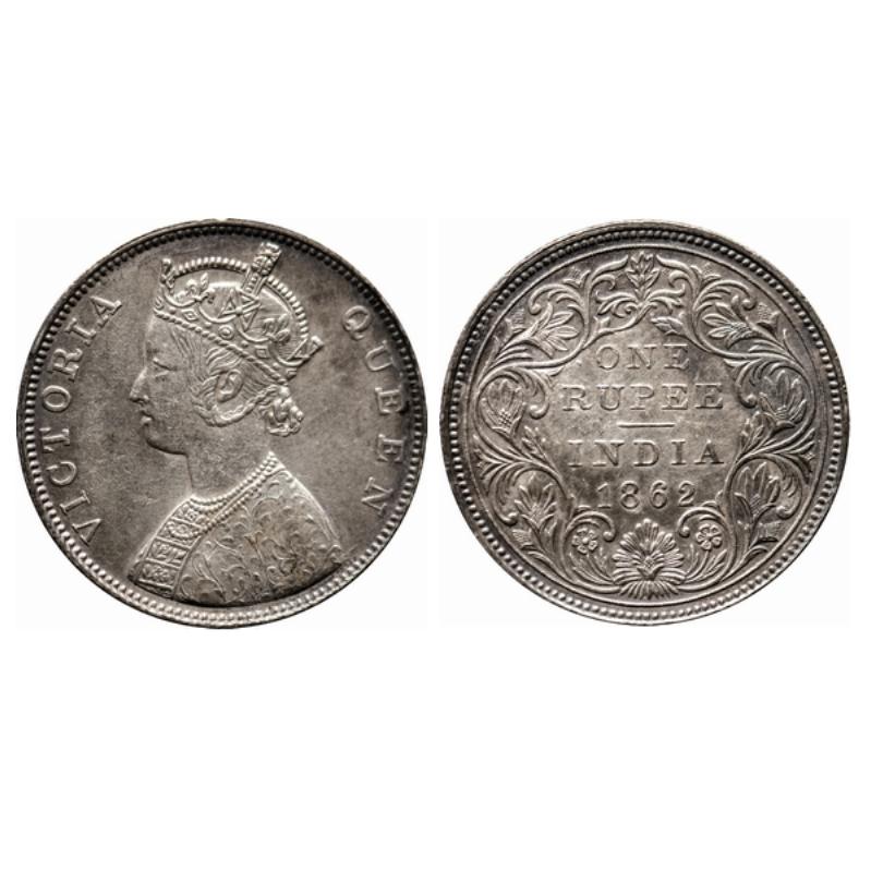 Victoria Queen, Silver, Rupee, 1862, Calcutta Mint, B/II. GK 241.