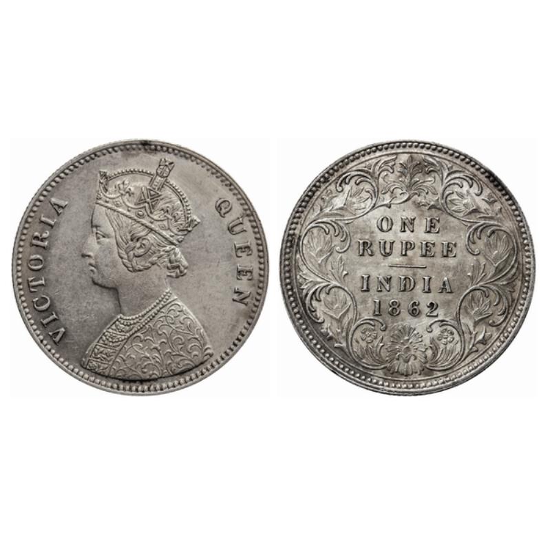 Victoria Queen, Silver, Rupee, 1862, Bombay Mint, A/I, top of 'A' in INDIA is flat and the numeral 1 of year has a short horizontal serif, die crack on obverse. Unlisted in GK.