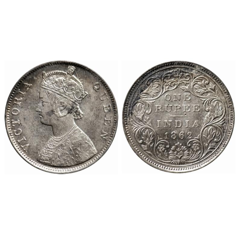 Victoria Queen, Silver, Rupee (2 Coins), 1862 Calcutta Mint, A/I, without initial 'J', Top of A In ...
