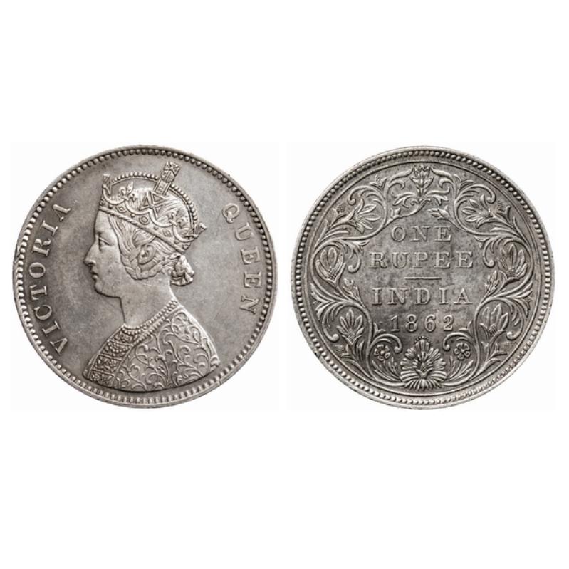 Victoria Queen, Silver, Rupee, 1862, Bombay Mint, A/II, 0/10 Dots. GK 338.