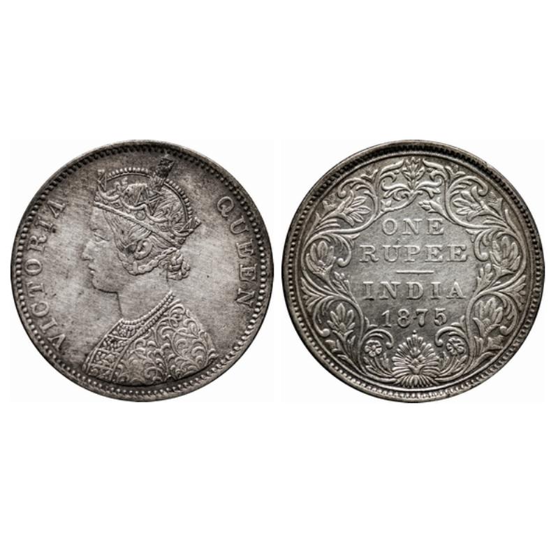 Victoria Queen, Silver, Rupee, 1875, Bombay Mint, A2/II, Dot, Top stroke of numeral 5 is long. GK 424.