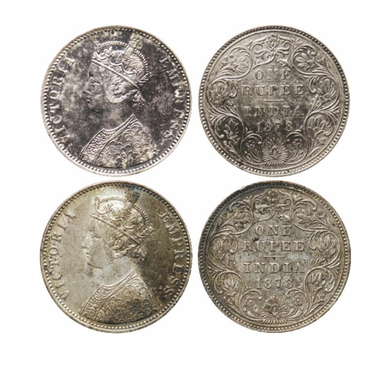 Victoria Empress, Silver, Rupee (2 Coins), 1878, Bombay Mint, A3/II dot, A3/II(ii) dot. GK 451, 453.