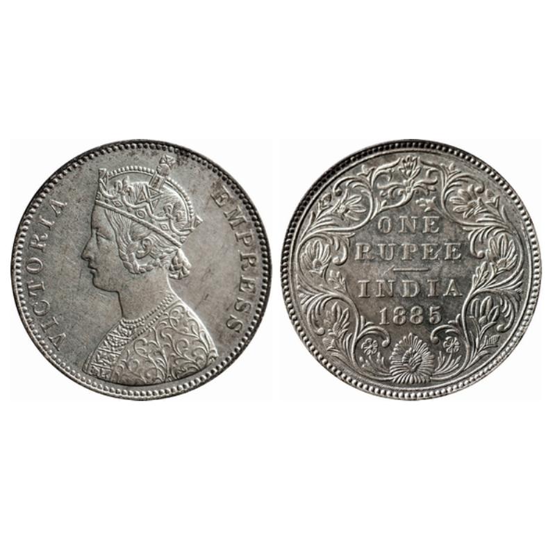 Victoria Empress, Silver, Rupee, 1885, Bombay Mint, A3/II(i), B raised, top stroke of numeral 5 long. GK 497.