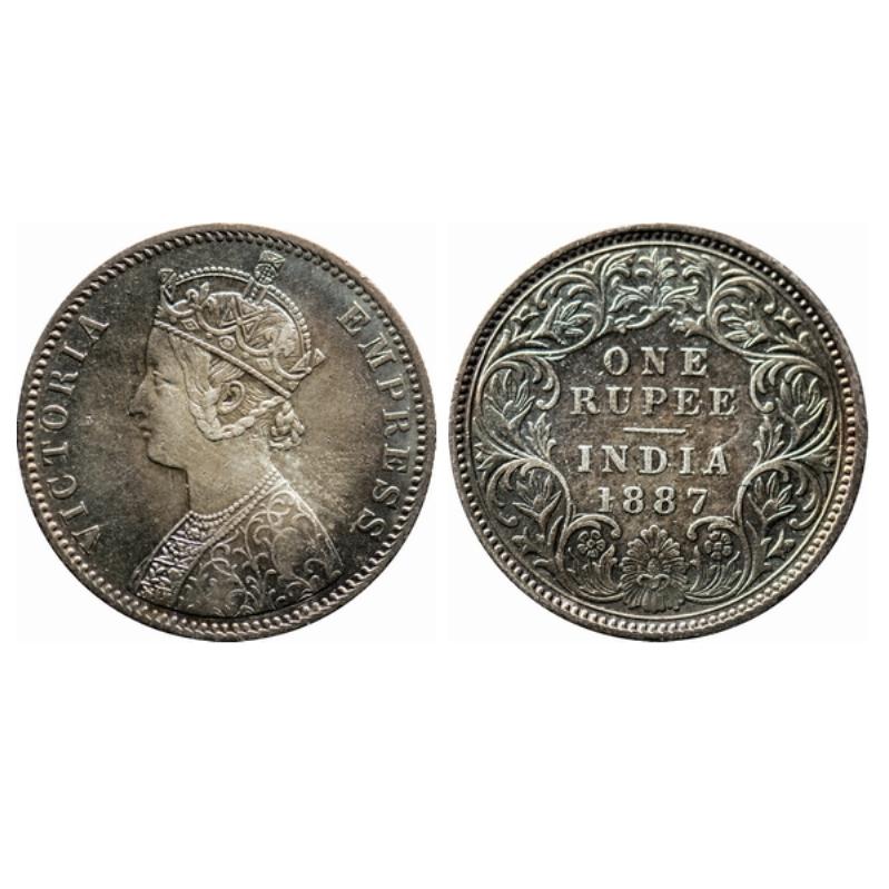 Victoria Empress, Silver, Rupee, 1887, Calcutta Mint, C3/I(i), C incused. GK 549.