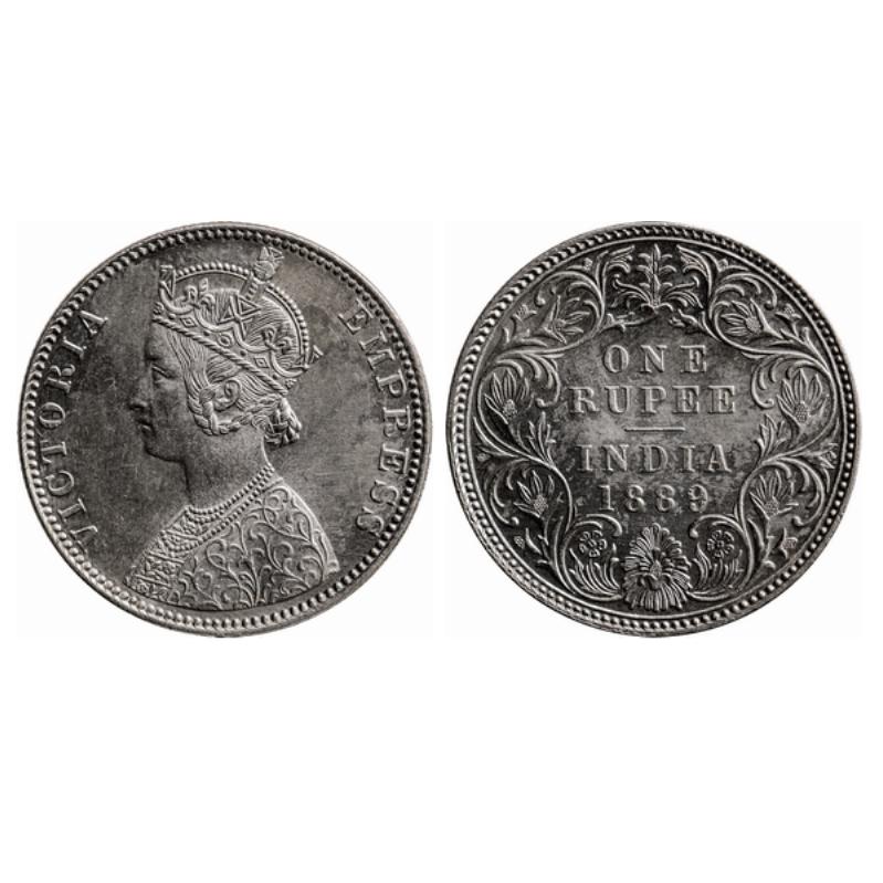 Victoria Empress, Silver, Rupee, 1889, Bombay Mint, C2/I, B incused. GK 564.