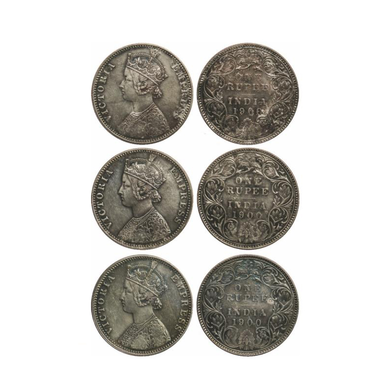 Victoria Empress, Silver, Rupee (3 Coins), 1900, Bombay Mint, A3/I, 'B' incused. GK 589.