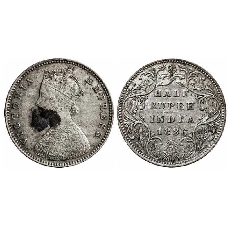 Victoria Empress, Silver, ½ Rupee, 1886, Bombay Mint, A/II(i), B raised. GK 633.