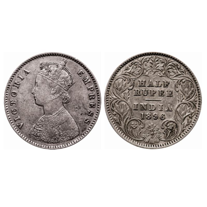 Victoria Empress, Silver, ½ Rupee, 1896, Calcutta Mint, A/I, C incused. GK 652.