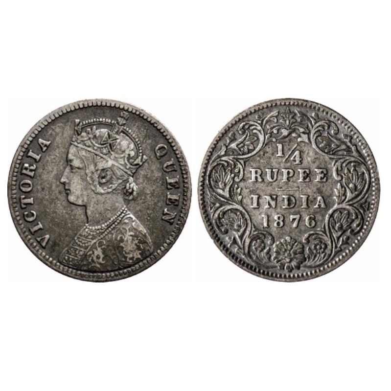 Victoria Queen, Silver, ¼ Rupee, 1876, Calcutta Mint, A/I, No mint mark, No C. GK 669. ...