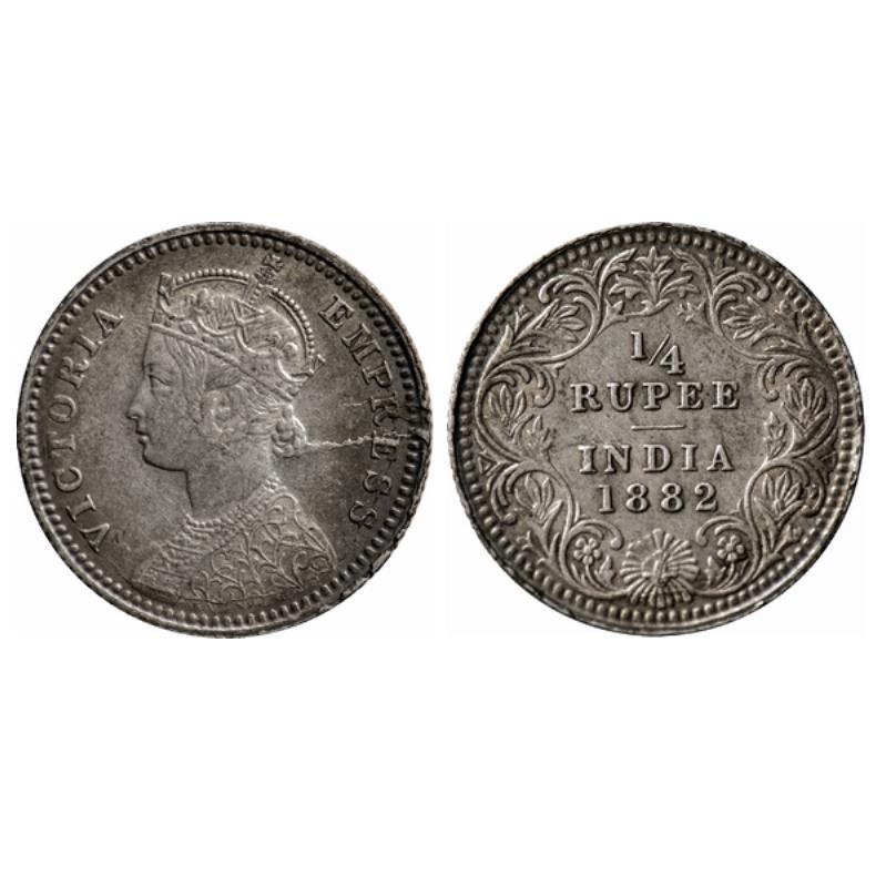 Victoria Empress, Silver, ¼ Rupee, 1882, Calcutta Mint, C/II, C incused, Multipal die cracks on Obv. GK 687.