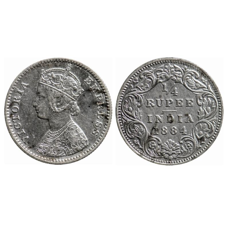 Victoria Empress, Silver, ¼ Rupee, 1884, Bombay Mint, B/I, B raised. GK 773.