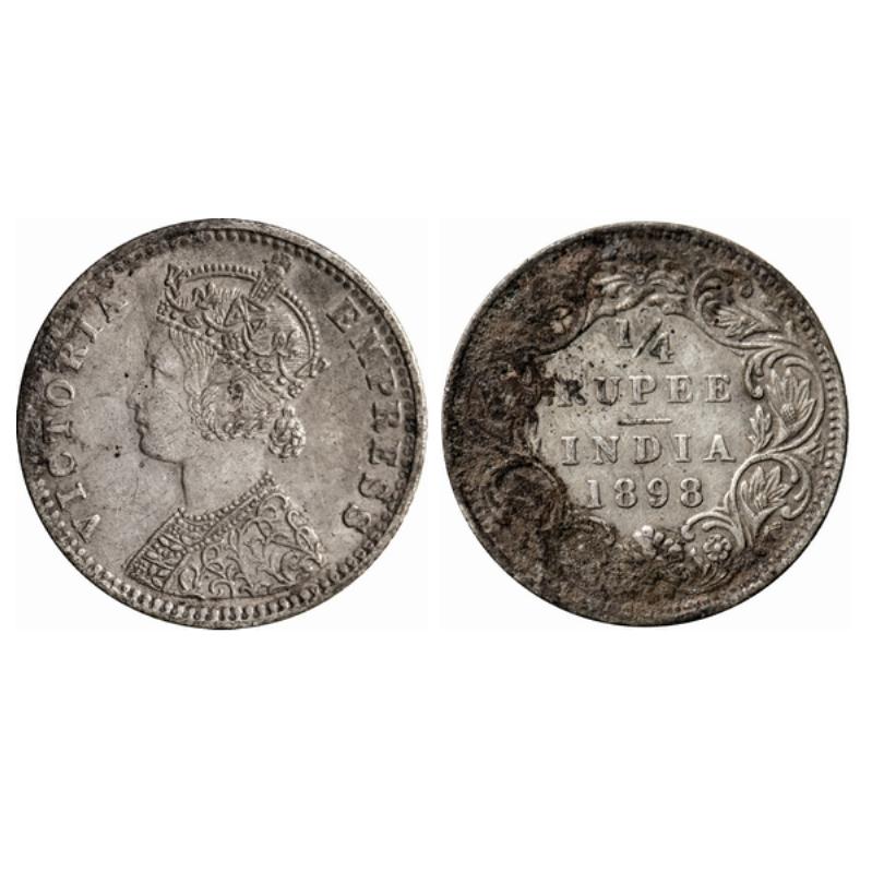 Victoria Empress, Silver, ¼ Rupee, 1898, Bombay Mint, C(i)/I, B incused. GK 734.