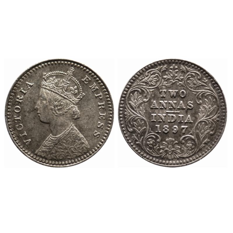 Victoria Empress, Silver, 2 Annas, 1897, Calcutta Mint, B/II, C incused. GK 807.
