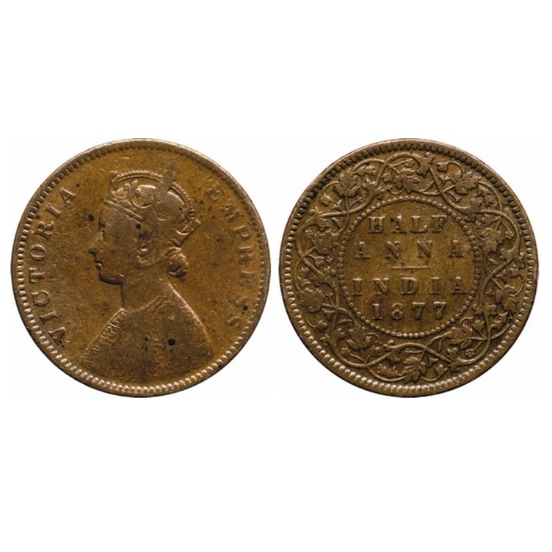Victoria Empress, Copper, ½ Anna, 1877, Calcutta Mint, C/II. GK 821.