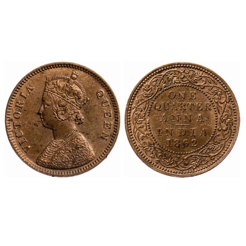 Victoria Queen, Copper, Quarter Anna, 1862, Madras Mint, A/I, no mint mark. GK 399. ...