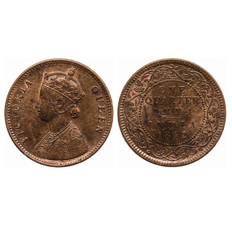 Victoria Queen, Copper, Quarter Anna, 1862, Madras Mint, A/I, no mint mark. GK 399.