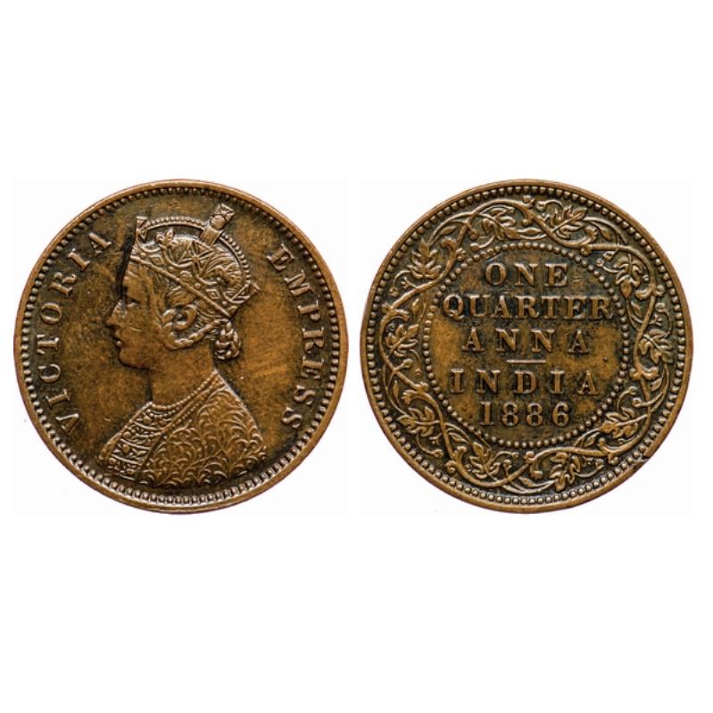Victoria Empress, Copper, Quarter Anna, 1886, Bombay Mint, B/I, no mint mark. GK 841.