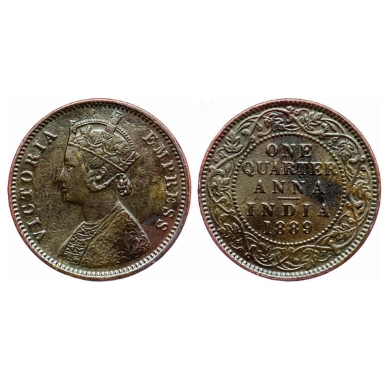 Victoria Empress, Copper, Quarter Anna, 1889, Calcutta Mint, B/II, no mint mark. Die crack on Obv ...