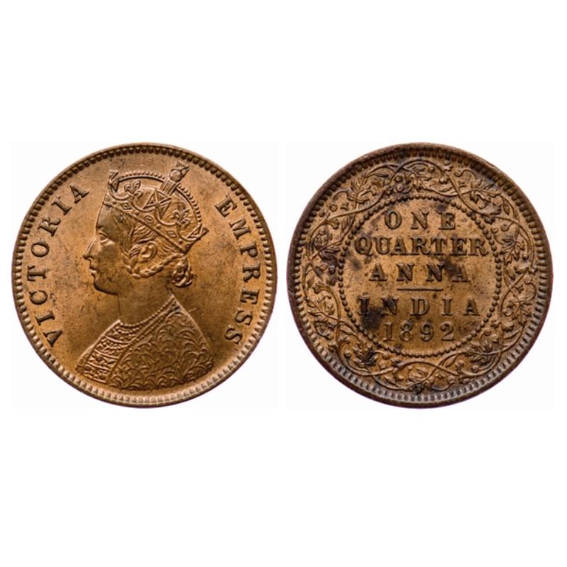 Victoria Empress, Copper, Quarter Anna, 1892, Calcutta Mint, B/II, no mint mark. GK 851.